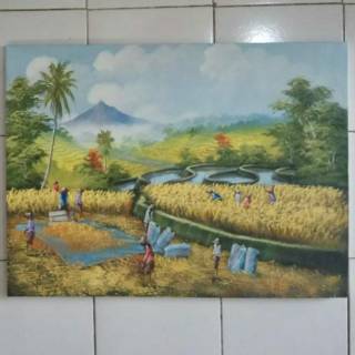 Lukisan Pemandangan Alam Sawah Dan Gunung Saat Panen Raya 041018 Di Lapak Dekorasi Dinding Bukalapak