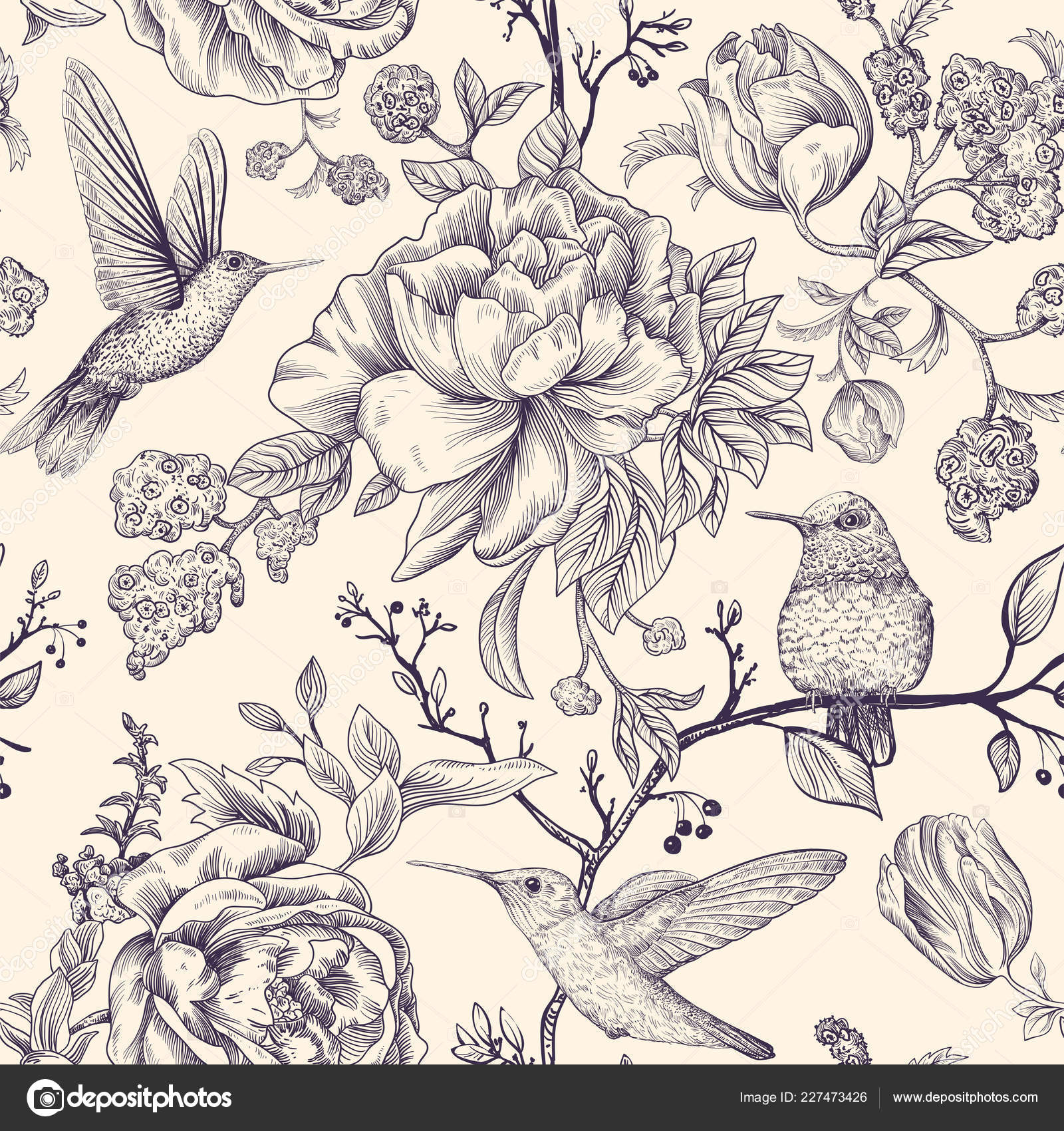 Pola Vektor Sketsa Dengan Burung Dan Bunga Desain Bunga Monokrom Untuk Web Kertas Pembungkus Penutup Telepon Tekstil Kain Kartu Pos Stok Vektor C Sunny Lion 227473426