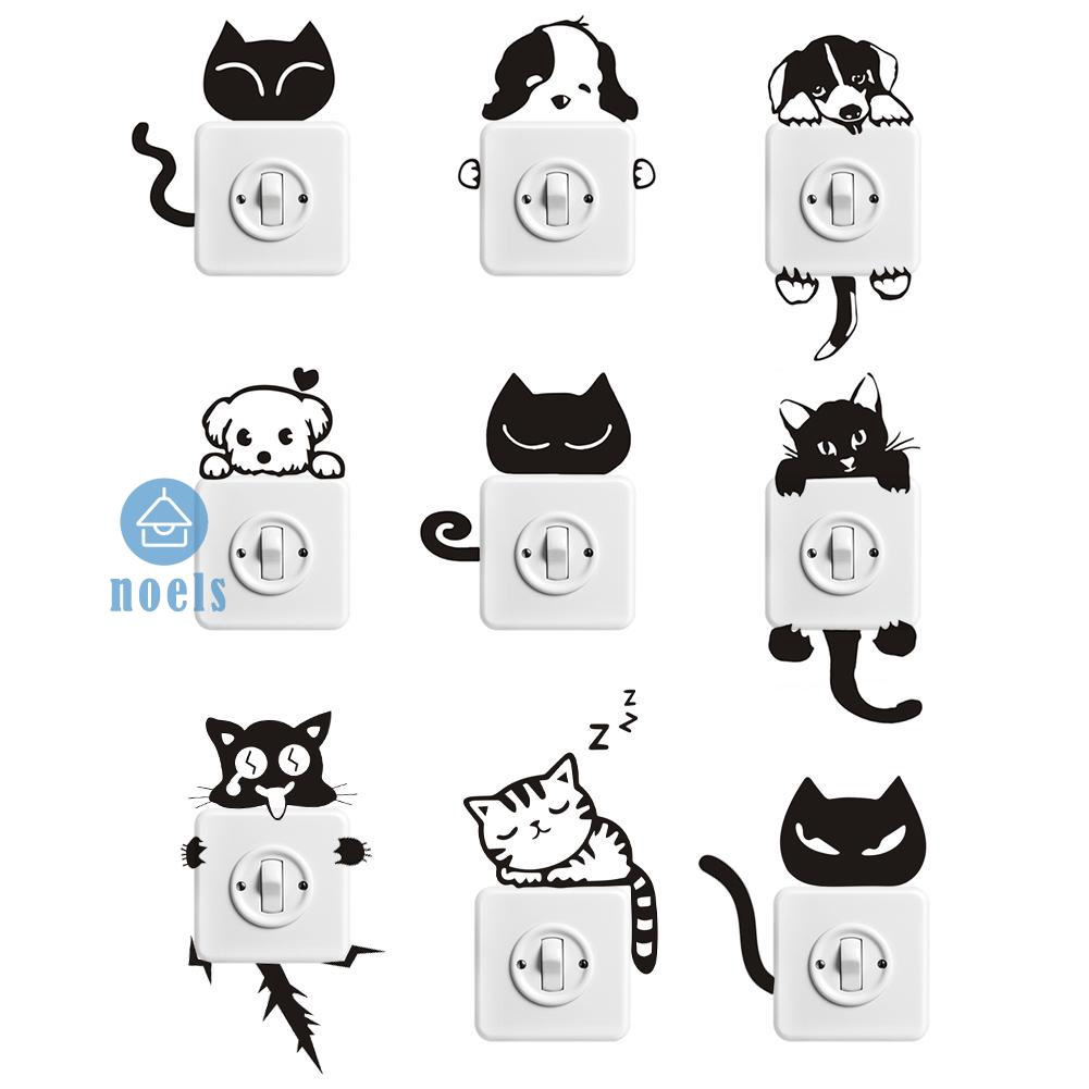 Diy Stiker Dinding Dengan Bahan Tahan Air Dan Gambar Kucing Anjing Untuk Saklar Lampu Shopee Indonesia