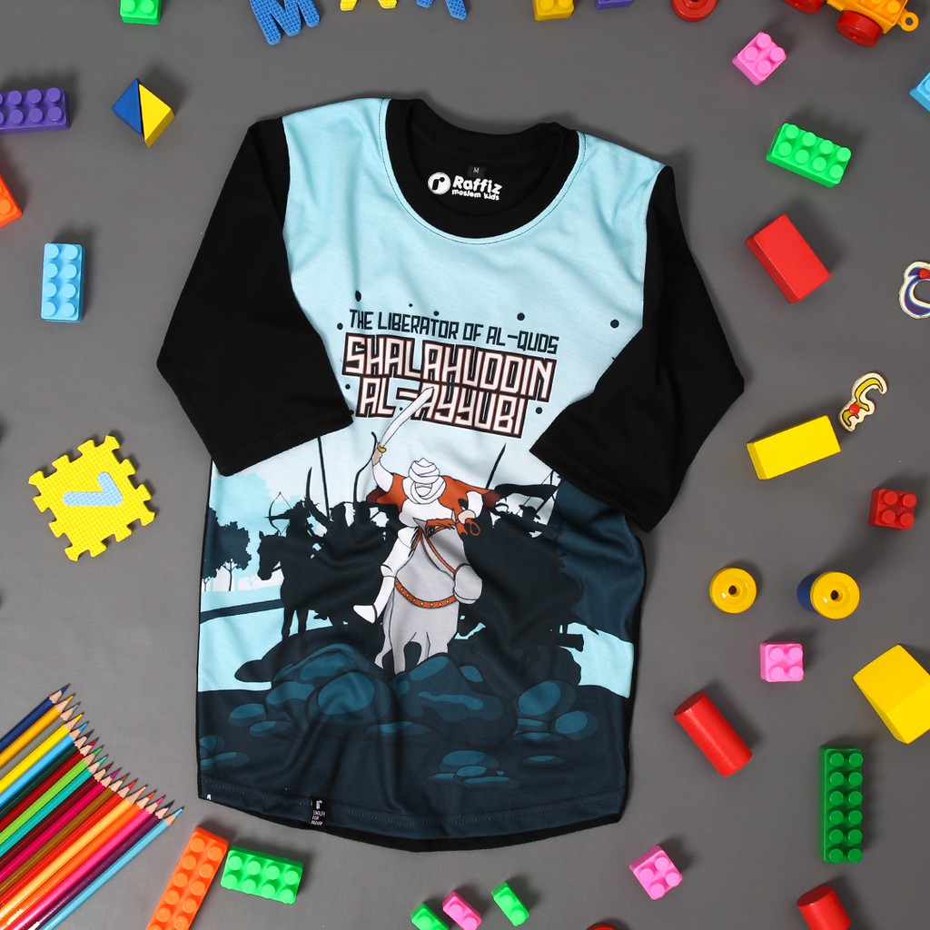 Kaos Kurta Anak Muslim Cowok Islami Keren Karakter Shalahudin Print Lengan 3 4 Original By Raffiz Shopee Indonesia