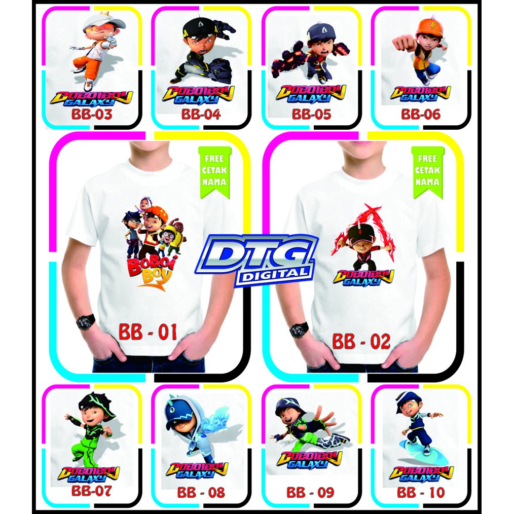 Kaos Boboiboy Katun Anak Kartun Tv Request Gambar Tambah Nama Keren Shopee Indonesia