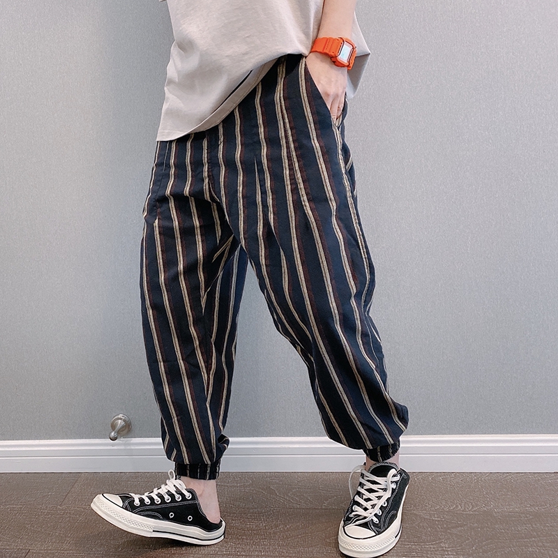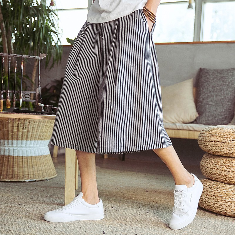 Celana Pendek Model Longgar Lebar Lurus Motif Garis Vertikal Bahan Katun Linen Untuk Pria Shopee Indonesia
