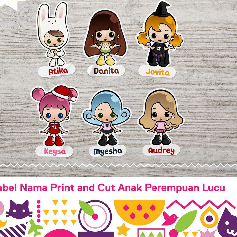Langsung Kirim Label Nama Waterproof Stiker Nama Print And Cut Gambar Anak Perempuan Lucu Shopee Indonesia